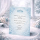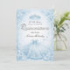 Celebre este momento mágico con esta soñadora invitación de Quinceañera azul y plateada. Con una tiara plateada flotante, suaves acentos florales, mariposas brillantes y un remolino luminoso de brillo, esta invitación establece el tono para una celebración inolvidable de cumpleaños número 15. Perfecta para Quinceañeras con temática real, invierno mágico o paleta de colores azul/plateado.