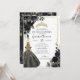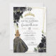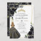 Invitación Elegante Quinceanera con acento de oro floral negr