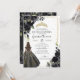 Invitación Elegante Quinceanera con acento de oro floral negr
