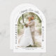 Este elegante arco fotográfico con la invitación a la boda con escritura caligráfica se puede personalizar con su información en tipografía moderna. Diseñado por Thisisnotme©