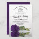 Esta hermosa invitación está diseñada para parejas que han decidido llevar a sus bodas a internet debido a la actual pandemia. Presenta un diseño magnífico con caligrafía de escritura de encaje, un único rosa de color púrpura real profundo de tallo largo reflejando en un charco de agua. Una forma maravillosa de invitar a sus amigos y familiares a compartir en su día especial, aunque las circunstancias impidan una reunión física.