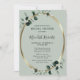 Elegante Relieve metalizado dorado Eucalyptus Invitación A La Ducha Verde De Novias... En nuestra lujosa ducha botánica con manchas botánicas en forma de novia se encuentra un falso marco dorado metálico oval adornado con hojas de eucalipto de color verde salvia y esmeralda que crean un borde natural para el texto de la invitación... sobre un delicado fondo de sabio. Todo el texto de ejemplo se puede revisar fácilmente con sus propios detalles en la plantilla de personalización.