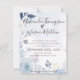 Elegante Invitación de Renovación de Votos Floral Acuarela Azul Polvo. Renueva los votos que se hicieron el uno al otro cuando se casaron por primera vez. Es una forma de conmemorar el amor que se ha profundizado o madurado entre la pareja. Personaliza estas bellezas cambiando los nombres de la pareja y otros detalles.