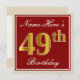 Invitación Elegante, Rojo, Dorado Falso Cumpleaños 49; Nombre
