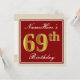 Invitación Elegante, rojo, falso oro 69º cumpleaños; nombre p