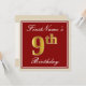 Invitación Elegante, rojo, falso oro 9 cumpleaños + nombre pe