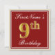 Este sencillo y elegante diseño de invitación para fiestas de cumpleaños incluye un mensaje personalizado como "Noveno cumpleaños de FirstName" (con el "noveno" con un aspecto falso/imitación de color dorado) dentro de un área cuadrada de color rojo con un simple contorno de borde. El nombre se encuentra en un texto elegante de color blanco tipo script, y se puede personalizar. En la parte posterior se incluyen detalles de invitación personalizados. Una invitación para una fiesta de cumpleaños como esta podría ser usada tal vez cuando se invita a la gente a una fiesta de cumpleaños para alguien que está celebrando su noveno cumpleaños. [~Z0000227]