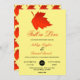 Esta elegante invitación a la boda de otoño es perfecta para un boda moderno de otoño. El diseño sencillo presenta hojas de otoño rojas con tipografía elegante en negro y rojo sobre un fondo amarillo claro