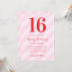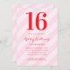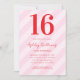 Crea tus propias invitaciones personalizadas de 16 años con tipografía moderna y fondo rayado de patrón rosado