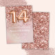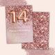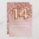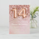 Elegante rosa de la invitación para una fiesta de cumpleaños de oro para un chica de 14 años con elegante escritura de escritura y divertidos globos de Relieve metalizado.