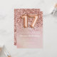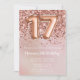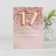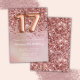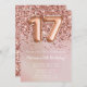 Elegante rosa de oro 17 cumpleaños invitación para un chica de 17 años con elegante escritura de escritura y divertidos globos de Relieve metalizado.