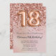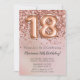 Elegante rosa de oro 18ª invitación para una fiesta de cumpleaños para un chica de 18 años con elegante escritura de escritura con letra negra y divertidos globos de Relieve metalizado.