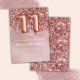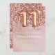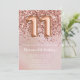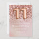 Elegante rosa de oro 11ª invitación para una fiesta de cumpleaños para un chica de 11 años con elegante escritura de escritura y divertidos globos de Relieve metalizado.