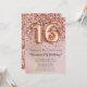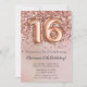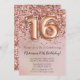 Elegante rosa dulce dulce de oro 16º cumpleaños invitación a una chica de 16 años con elegante escritura de escritura con letra negra y divertidos globos de Relieve metalizado.