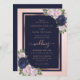 Invitación Elegante Rosa de la Marina Azul Rubor Gold Floral