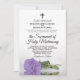 ¡Únete al amor y la fe con esta bella invitación a la boda! Perfecto para una ceremonia católica moderna, esta impresionante invitación cuenta con una sola lavanda de tallo largo o un rosa de color púrpura claro, reflejando elegantemente en el agua. Completa con cruz o crucifijo, esta invitación extiende una cálida invitación a sus invitados a unirse a usted en una feliz misa nupcial, celebrando el sacramento del santo matrimonio. Admire la tradición formal y el estilo moderno en su día especial, e invite a sus amigos y familiares a compartir su felicidad con esta invitación perfecta.