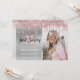 Este diseño de invitación moderno cuenta con brillo falso de rosa dorado goteando, textura metálica plateada y fuente de caligrafía elegante. Agrega tu foto favorita.