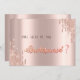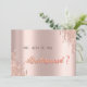 Tarjeta de dama de honor elegante y chic con rosa dorado y destellos que gotean