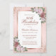 Invitación Elegante Rosa Dorado Floral Rosa 80º cumpleaños