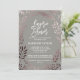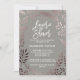 Esta elegante tarjeta de rosa dorado y de ducha de lencería gris es perfecta para una elegante ducha de novia. El diseño presenta un impresionante marco de hojas rosadas sobre un fondo gris oscuro y está emparejado con un llamativo tipo de letra cursiva. Nota: Este diseño no tiene Relieve metalizado de oro rosa real. Es un gráfico de alta calidad hecho para que parezca oro rosa sucio.