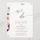 Esta elegante tarjeta de invitación a la boda con caligrafía de oro rosa floral "hacemos" es perfecta para una boda en otoño. El diseño presenta una romántica y caprichosa tipografía de Relieve metalizado de oro rosa con un magnífico ramo de rosa rosa rubor, marsala y flores de color burdeos en el fondo. Nota: Este diseño no tiene Relieve metalizado de oro rosa real. Es un gráfico de alta calidad hecho para parecer un Relieve metalizado de oro rosa.