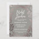 Esta elegante tarjeta de rosa dorada y de novia gris es perfecta para una elegante ducha de boda. El diseño presenta un impresionante marco de hojas rosadas sobre un fondo gris oscuro y está emparejado con un llamativo tipo de letra cursiva. Nota: Este diseño no tiene Relieve metalizado de oro rosa real. Es un gráfico de alta calidad hecho para que parezca oro rosa sucio.