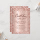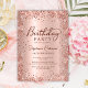 Moderno y elegante rosa de oro metálico y purpurina invitaciones para fiestas de 18 años. El diseño de esta tarjeta giratoria presenta un diseño elegante de caligrafía escrita a mano, fondo metálico de color rosa rosa o rosa dorado con marco purpurina de vidrio suelto alrededor. Fácil de personalizar, perfecto para cualquier edad.