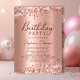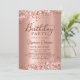 Elegante Rosa Purpurina de Oro Metalizado Invitación de cumpleaños número 80. Celebre con estilo con estos elegantes Relieves metalizados metálicos de oro rosa y las invitaciones de la fiesta de cumpleaños número 80 del purpurina. Con una caligrafía moderna escrita a mano, un fondo de Relieve metalizado metálico rosa o rosa falso color rosa moda y un glamoroso borde purpurina, este diseño desprende sofisticación. Perfecto para cualquier edad y fácil de personalizar, estas invitaciones marcan el tono para una celebración inolvidable.