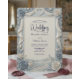 Establece un tono histórico y romántico para tu día especial con este tradicional diseño de pizarra y crema, que presenta una escena floral esculpida y bellamente impresa.