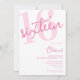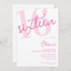 Una invitación moderna y sencilla de 16 años con una tipografía caligráfica elegante y un diseño minimalista de color rosa y blanco.