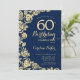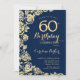 Invitación Elegante Rosas de la Marina Azul Oro 60 cumpleaños