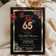Invitación Elegante Roses Rojos Marco Negro 65 cumpleaños