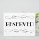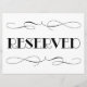 Asientos "reservados" / boda de mesa o señal especial de evento. Presenta un diseño de estilo Art Déco vintage con rollos en negro.