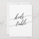 Este elegante cartel de una mesa para niños de caligrafía negra es perfecto para un simple boda. Este signo es de doble cara. El diseño neutro cuenta con un poster minimalista decorado con una tipografía romántica y caprichosa.