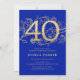 Invitación Elegante Royal Blue Gold 40 cumpleaños