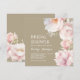 Hermoso ilustracion acuático de un ramo de peonía rosa sobre un fondo de taupe para la ducha nupcial con temática primaveral.