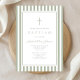 Elegante Invitación de Bautizo de Niño Sabio Religioso Verde.
