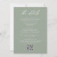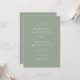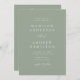 Elegantes invitaciones nupciales "todo en uno" con sus nombres e información sobre la ceremonia de los bodas en la parte delantera, con letras blancas con un fondo verde sabio. Un guión moderno de caligrafía completa el aspecto de esta invitación a la boda verde de sabio de la moda. Personalice la parte posterior de las invitaciones de boda caligráficas con detalles bodas como información de recepción, alojamiento de hotel, instrucciones RSVP y sitio web de bodas. Agregue el enlace deseado del sitio web del boda a la plantilla de código QR proporcionada para que sus huéspedes puedan ver fácilmente RSVP en línea y obtener información adicional sobre el boda. Esta sabia invitación a la boda en código QR verde es perfecta para bodas formales e informales de cualquier temporada.