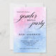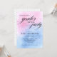 Este género revela la invitación a la fiesta incluye un guión elegante en un fondo de color rosa y azul.