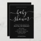 Elegante Script Invitación Baby Shower en blanco y negro. Invite a su familia y amigos con este modelo de ducha de bebé boda moderno y minimalista. Personalice esta elegante y elegante invitación con nombres, lugar, fecha y hora.