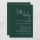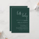 Sencilla Invitación a Baby Shower Neutral con guión verde puede fácilmente hacer personalizar pulsando el botón "Personalizar". Nuestra elegante y bonito invitación a la ducha para bebés presenta caligrafía moderna y tipografía moderna en blanco sobre un fondo verde. Por invitación, a tus invitados les encantaría recibir. Todos los elementos de esta tarjeta son totalmente editables tanto en texto como en fondo. Simplemente haga clic en el botón "Personalizar con nuestra herramienta de diseño" anidado bajo el enlace "Personalizar" para editar!