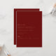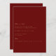 Esta elegante tarjeta de oro de guión y tarjeta de compromiso rojo profundo presenta escritura moderna y texto limpio para un diseño rojo profundo y sencillo que le encantará. Añade texto personalizado para proporcionar cualquier información adicional necesaria para tus invitados. Siéntase libre de enviarme cualquier pregunta relacionada con el diseño - ¡estaré encantado de ayudar!