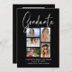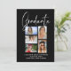 Elegante Script Multi Photo Graduation Party Invitation incluye cinco de tus fotos favoritas de tu graduado universitario o de secundaria con el rápido y moderno guión de caligrafía negra "Graduate". Personalice editando el texto en los cuadros de texto proporcionados. Sencillo, elegante y elegante. Creado por ©Evco Studio www.zazzle.com/store/evcostudio