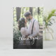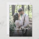 Tarjeta de agradecimiento con letras de mano para Bodas modernos. Una manera grandiosa y reflexiva de agradecer a tus amigos, familia y compañeros de trabajo que aparecieron para celebrar tu día de boda. Presentamos una tarjeta de agradecimiento con una fotografía moderna con la letra manuscrita "gracias" y un corazón de amor.