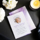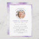 Elegante Sencillo En La Invitación Funeral De La Foto De Memoria Amable. Una simple y elegante invitación funeraria o conmemorativa con foto, una plantilla fácil de personalizar con tu imagen y las palabras preferidas con suave color de agua morado.