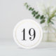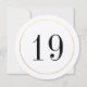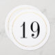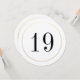 Número clásico de mesa en blanco y negro sobre papel de brillantes gruesos círculos cortados con borde dorado. También hay disponibles varios tipos de papel, esquinas cuadradas o redondeadas.