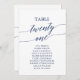 Invitación Elegante tabla azul de la Marina Número de asiento