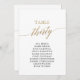 Estas elegantes cartas doradas número 30 son perfectas para un simple boda. El diseño neutro cuenta con una tarjeta minimalista decorada con una romántica tipografía de Relieve metalizado de imitación de oro. La tarjeta se imprime en la parte delantera y trasera (doble cara).
