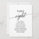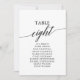 Estas elegantes cartas negras de la tabla número 8 son perfectas para un simple boda. El diseño neutro cuenta con una tarjeta minimalista decorada con una tipografía romántica y caprichosa. La tarjeta se imprime en la parte delantera y trasera (doble cara).