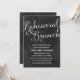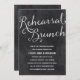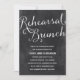 Este elegante brunch de ensayo en blanco y negro presenta una hermosa caligrafía rústica y un fondo de pizarra.